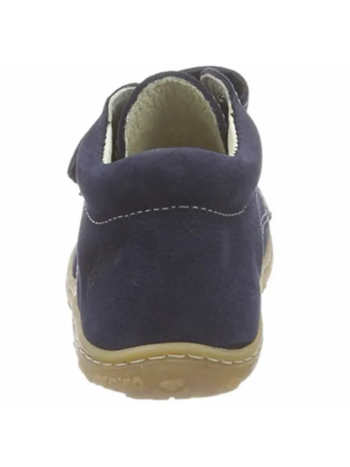 Knuffig weiche Lauflernschuhe für Jungen aus hochwertigem Nubukleder. Innen cromfrei gegerbt. Klettverschluss für einfaches An- und Ausziehen sorgt für guten Halt. Laufsohle aus Gummi, normale Weite.