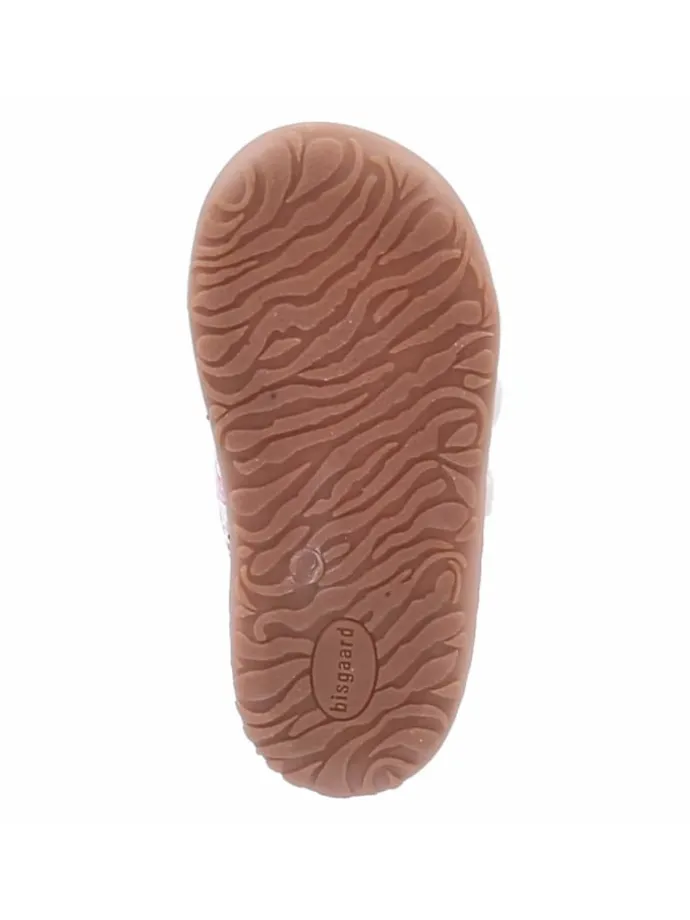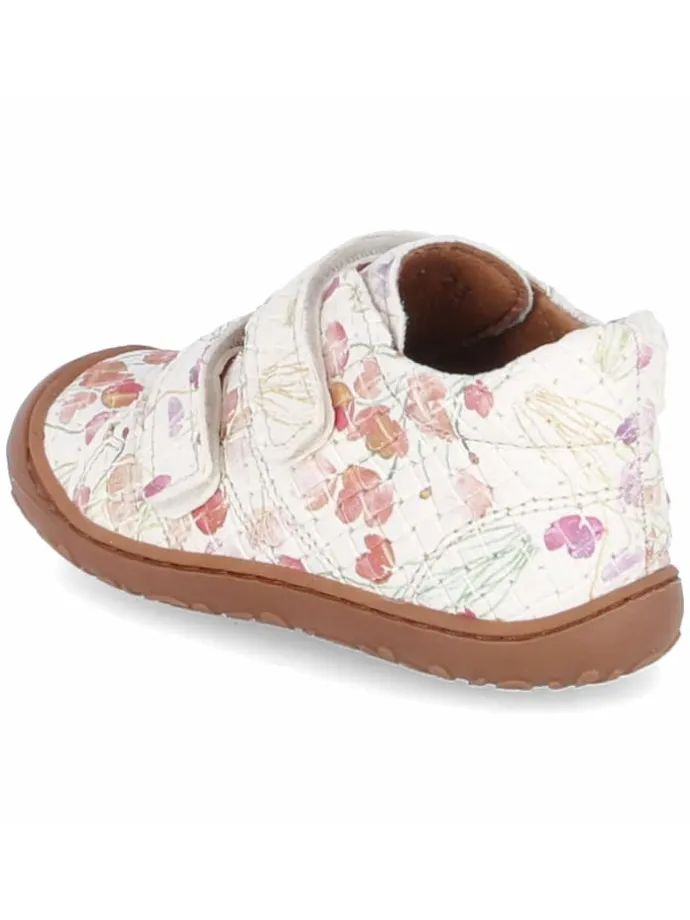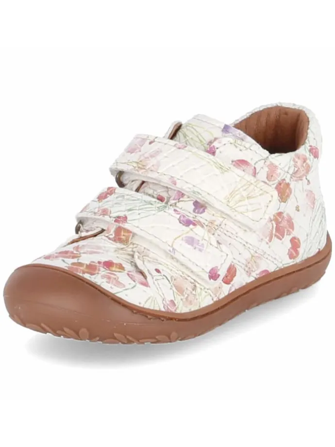 Komfort trifft Alltagstauglichkeit: Der Klettschuh HALE V von Bisgaard wurde für aktive Kleinkinder entwickelt. Das robuste Leder-Obermaterial präsentiert eine feine Flechtoptik mit pastellfarbenen Blüten, die dem weißen Grund eine fröhliche Note geben. Ein weich gepolsterter Einstieg, die runde Front und die griffig-flexible Sohle mit Zehenkappe unterstützen natürliche Abrollbewegungen und sicheren Stand. Innen überzeugt der Schuh mit Lederfutter und einer hautfreundlichen Lederdecksohle; das austauschbare Lederfußbett lässt sich bei Bedarf herausnehmen. Mehrere Klettverschlüsse ermöglichen schnelles Anpassen und erleichtern den Alltag in Kita und Freizeit. Der Schnitt fällt normal aus. Modetipp: Kombiniert mit einer Strickshorts, einem leichten Sweatshirt und Söckchen in Puder oder Salbei entsteht ein harmonischer Übergangslook.
