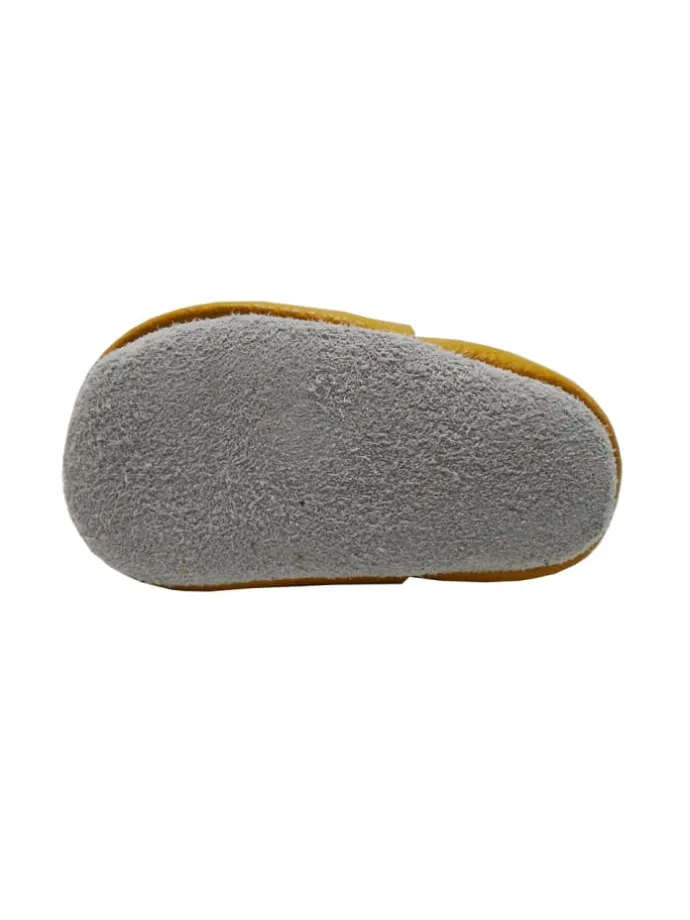 Die flache Absatzform und die mittlere Schuhweite ermöglichen natürliche Bewegungsfreiheit. Nicht wasserfest – ideal als Hausschuh, Krabbelschuh oder Lauflernschuh für den Innenbereich.