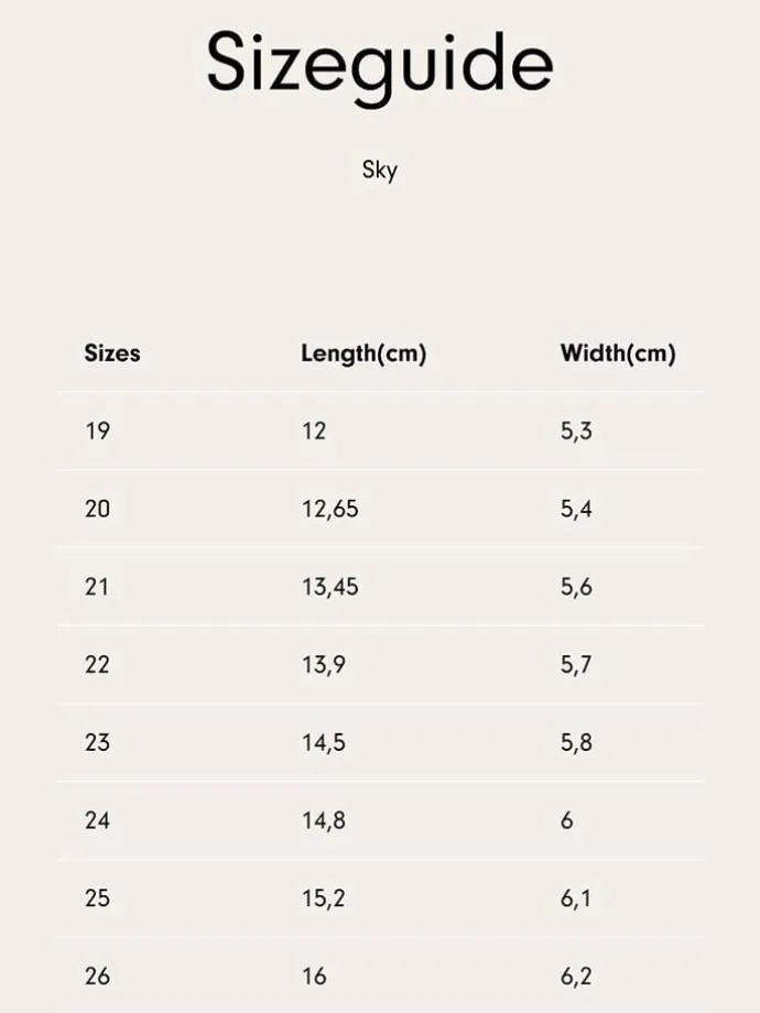 | Size | 19, 20, 21, 22, 23, 24, 25, 26 |
