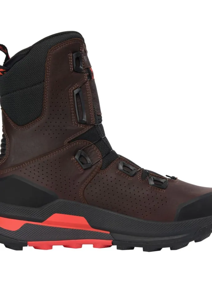 Der Stiefel ist außerdem mit einem doppelten Boa Verschlusssystem ausgestattet, das für eine perfekte Passform sorgt. Unten bietet eine EVA-Zwischensohle mit doppelter Dichte ein ideales Maß an Dämpfung und Halt, während eine stabilisierende Platte die Ferse beim Tragen schwerer Lasten während und nach der Jagd unterstützt.