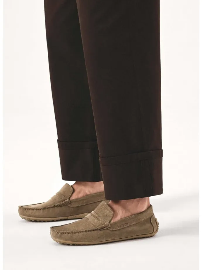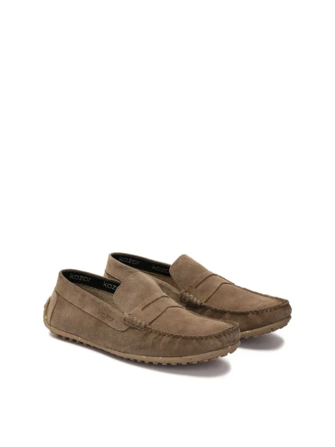 Dieblauen Mokassins aus hochwertigem Veloursleder sind ein semi-formelles Schuhwerk, das sowohl zu legeren als auch zu etwas eleganteren Smart-Casual-Outfits passt. Die klassische Form zeichnet sich durch markante Nähte auf der Vorderseite, eine leicht erhöhte Spitze und eine flexible Sohle aus. Die bequeme Stollensohle gibt Halt und macht das Gehen stabil und sicher. Ein interessanter Akzent ist das in Leder geprägte KAZAR-Logo an der Seite des Schaftes. Der größte Vorteil der Schlupfschuhe ist das einfache An- und Ausziehen der Schuhe.