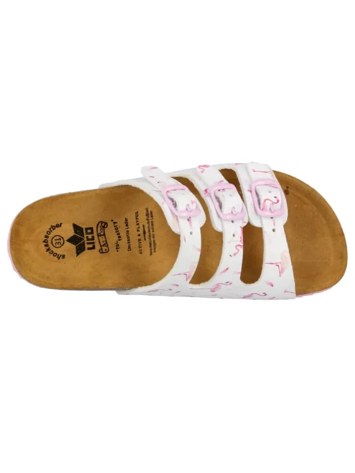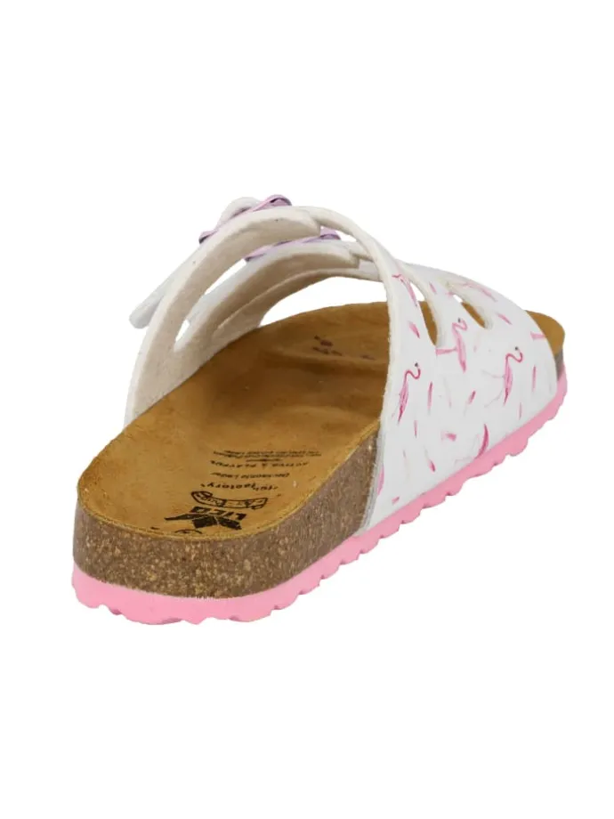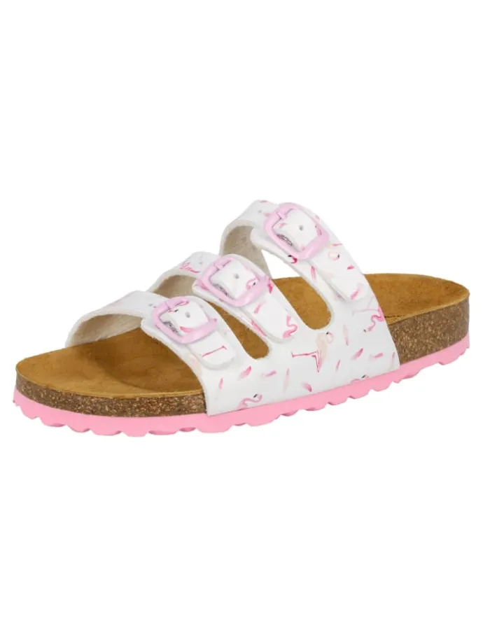 Pantolette für Kinder aus Synthetik, verstellbare Schnallen, Lederdecksohle und dämpfungsaktive EVA-Laufsohle. Fußbett: Kork/Kautschuk