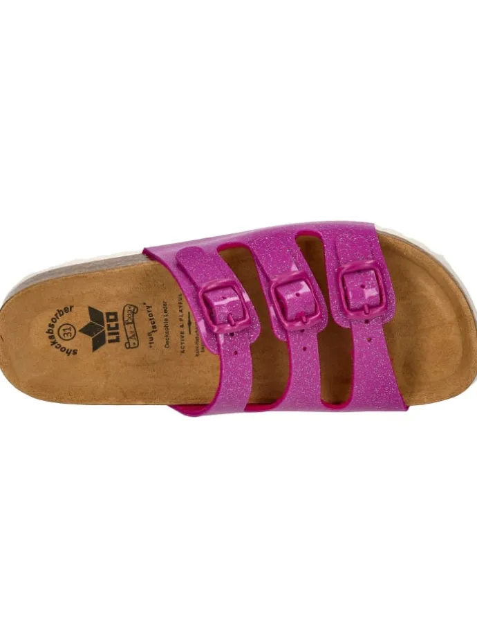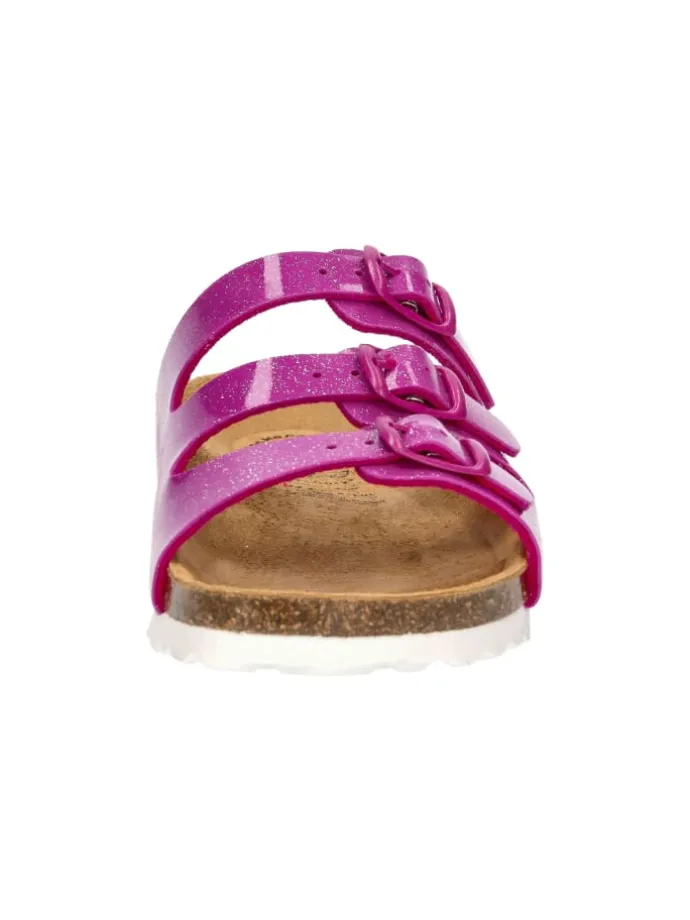 Die Coole Pantolette für Kinder wurde aus einem angenehm weichem Synthetik gefertigt. Durch die drei verstellbare Schnallen kann die Pantolette optimal am Fuß angepasst werden. Das Fußbett besteht aus einem Materialmix von Kork und Kautschuk und wurde mit einer Lederdecksohle überzogen. Die dämpfungsaktive EVA-Laufsohle runden die Ausstattung dieser Pantolette ab.