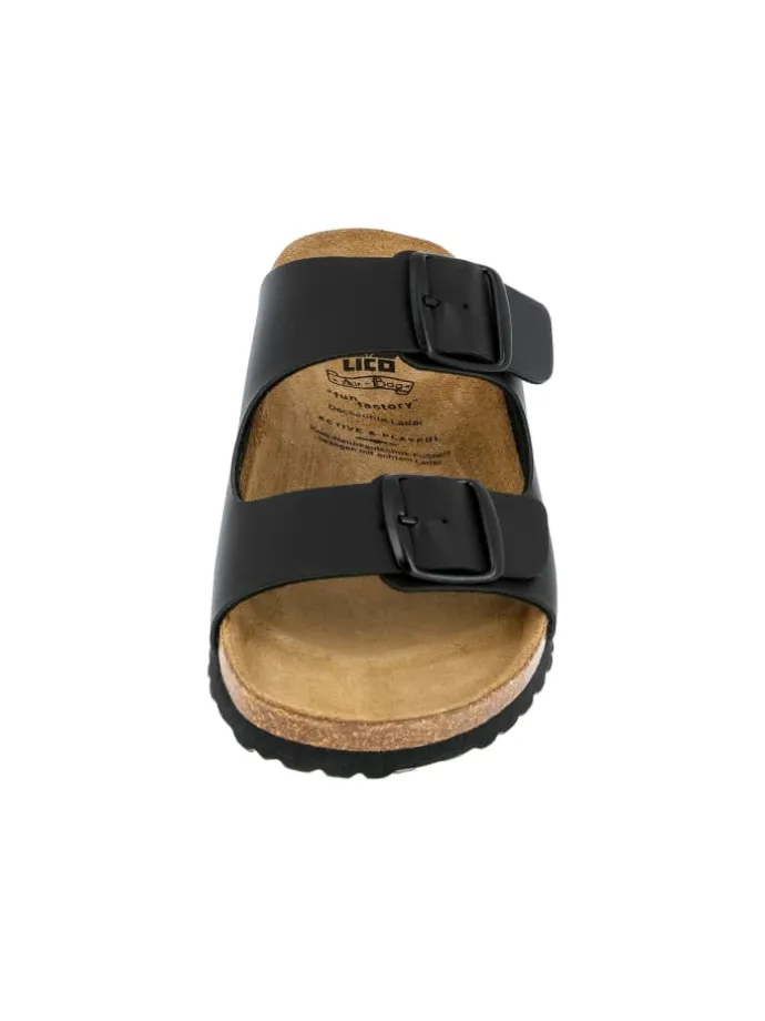 Liebe auf den ersten Schritt! Das gelingt mit den Pantoletten von LICO. Optisch ansprechend und darüber hinaus äußerst bequem präsentiert sich das Obermaterial aus Synthetik. Damit sich die Füße auch an langen Tagen rundum wohl fühlen, ist das Innenmaterial aus Textil gefertigt. Durch das Schnallen wird der Schuh nicht nur optisch aufgewertet, sondern gleichzeitig äußerst funktionell. Damit die Schuhe auch an langen Tagen nicht an Komfort einbüßen, ist die Laufsohle aus Gummi gefertigt. In Kombination mit einer Jeans und einem luftigen T-Shirt entsteht ein modischer Look für einen Tag zu Hause oder einen Grillabend im Garten. LICO beweist mit dieser Pantolette, dass sich ein überragendes Design und hoher Komfort prima verbinden lassen.