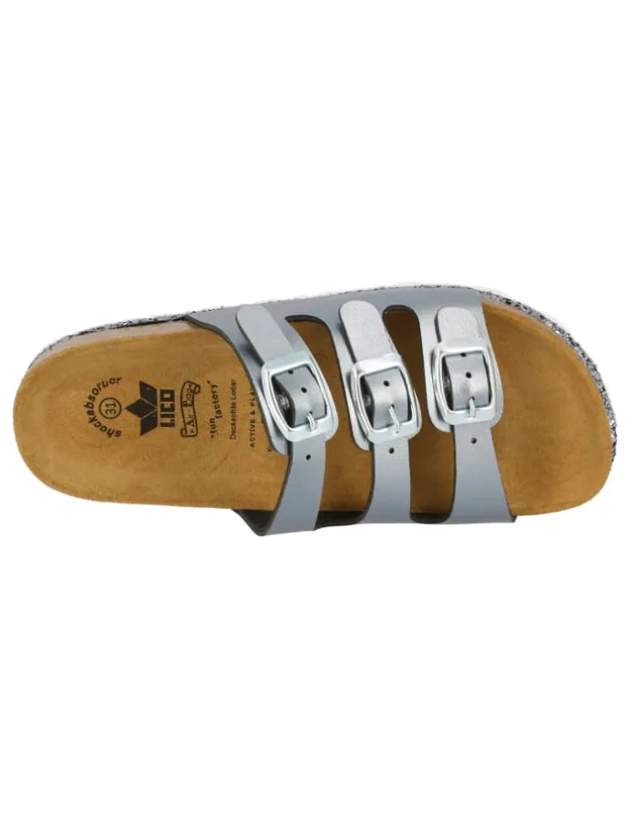 Die gemütliche Pantolette von LICO ist ein Must-have für entspannte Tage und schöne Stunden zuhause. Für die ansprechende Optik zeigt sich besonders das Obermaterial aus Synthetik verantwortlich. Mit dem Innenmaterial aus Textil sind die Füße immer komfortabel und weich gebettet. Für guten Halt sorgt die robuste Laufsohle aus Gummi. Getragen zu einer Stoffhose und einem luftigen Top ist im Handumdrehen der ideale Look zusammengestellt. Freunde treffen, im Park spazieren oder vor Ladenschluss noch schnell in den Supermarkt: die Pantolette von LICO ist überall dabei!Pantolette für Damen aus Synthetikverstellbare SchnallenLederdecksohle mit Softfittechnologiedämpfungsaktive EVA-LaufsohleFußbett: Kork/Kautschuk