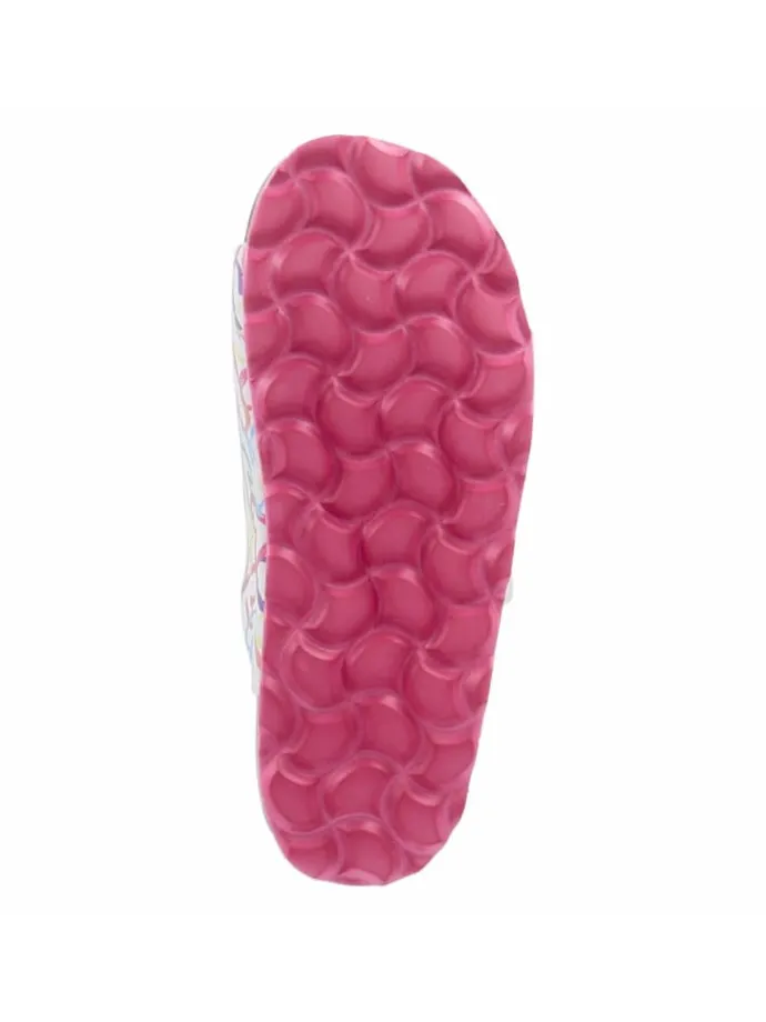 In diesen Kinder-Pantoletten trifft spielerischer Print auf klare Weißnuancen, was Outfits sofort aufhellt. Das synthetische Obermaterial ist alltagstauglich und durch die pflegeleichte Oberfläche rasch wieder sauber. Für Komfort bürgt die hautfreundliche Lederdecksohle, die kleine Füße weich begleitet. Zwei sichere Schnallen erlauben präzise Anpassung und geben verlässlichen Halt, die offene Schuhspitze lässt genügend Freiheit. Mit klassischem Schnallenverschluss und normal ausfallender Passform ist das Modell unkompliziert im Handling. Ob Kita, Urlaub oder Familienfeier – ein vielseitiger Sommerschuh. Modetipp: Zu Cargo-Shorts und einem leichten Sweatshirt entsteht ein lässiger Look; mit Faltenrock und einem schlichten T-Shirt wirkt der Print dezent verspielt.