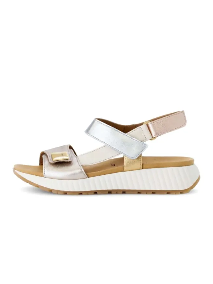 Modisch und mit funktionalen Details versehen, schmeicheln diese Gabor Gabor Plateau Sandalen jedem Damenfuß. Das Obermaterial in multicolour besteht aus einem wertigem Materialmix aus Leder und macht diese Sandalen zur stilvollen Wahl. Schuhweite F (normal) bedeutet, dass die Sandalen perfekt für schmale bis normale Damenfüße geeignet sind. Aufgrund der Best-Fitting-Ausstattung freut sich die Trägerin über eine verbreiterte Auftrittsfläche im Ballenbereich und mehr Komfort.
