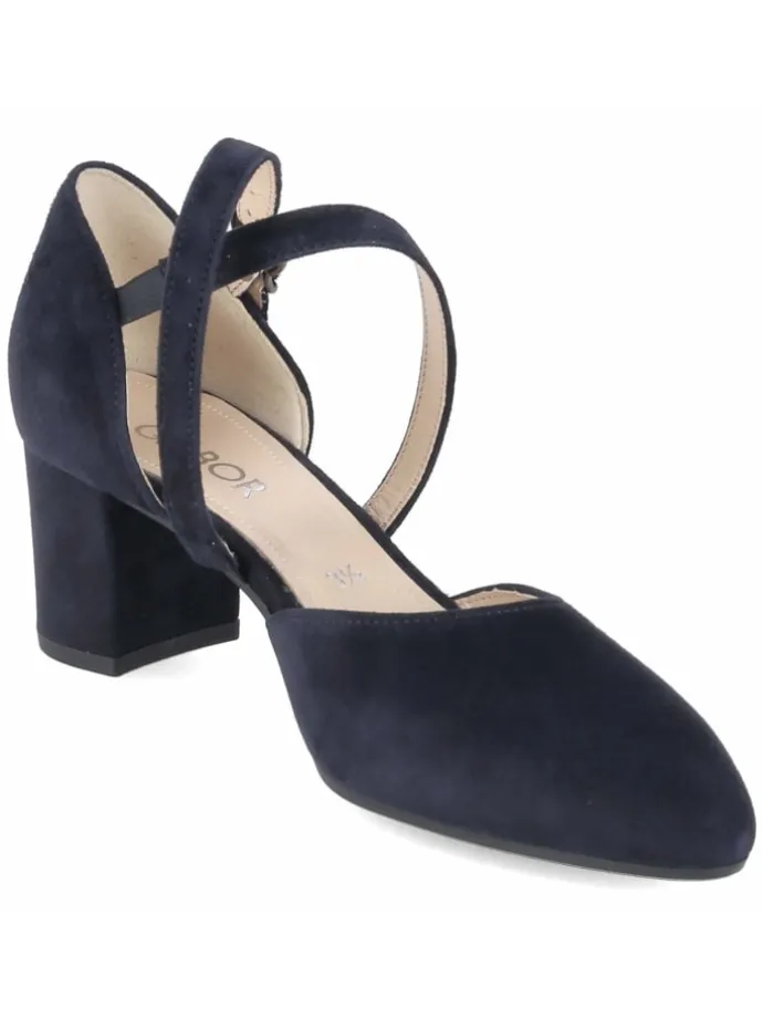 Elegantes Understatement zeigt dieser Damen-Pumps von Gabor in strahlendem Weiß. Die spitze Leiste verlängert optisch das Bein, während der stabile Blockabsatz mit 6 cm Höhe eine angenehme Balance aus Präsenz und Komfort schafft. Hochwertiges Glattleder mit sanftem Schimmer, gekreuzte Riemchen mit elastischer Partie und die Schnalle mit Druckknopf verbinden Ästhetik und Funktion. Innen sorgen eine lederne Decksohle und ein weich gepolstertes Fußbett für Komfort, die flexible, rutschfeste Laufsohle unterstützt einen sicheren Schritt auf verschiedenen Untergründen. Das Modell fällt normal aus und passt zu businessnahen wie festlichen Outfits. Modetipp: Ein Jumpsuit aus Crêpe und silberfarbener Schmuck betonen die moderne Note; alternativ setzt ein minimalistisches Slipdress mit beige Trenchcoat auf zeitlose Eleganz.