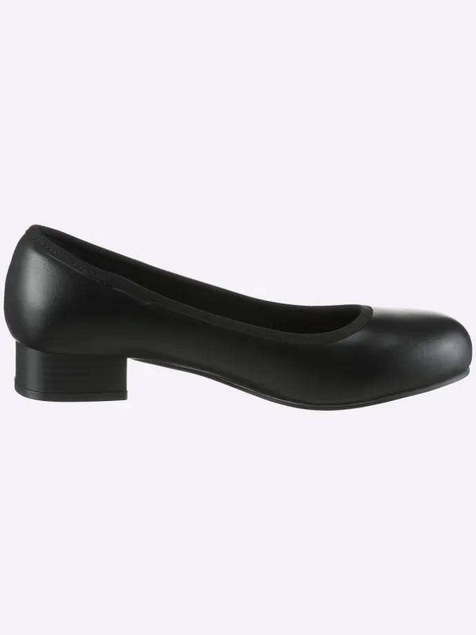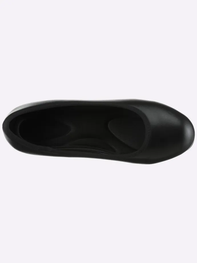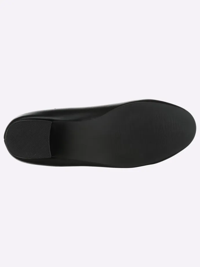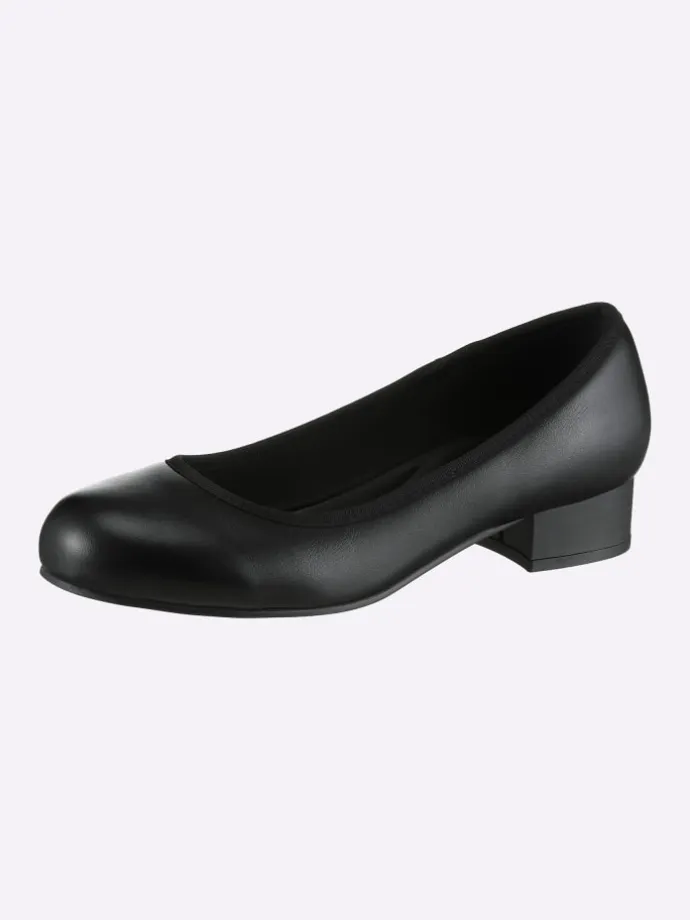 Für einen gelungen Auftritt zu jedem Anlass sorgt dieser schicke Pumps. Obermaterial aus pflegeleichtem Lederimitat, mit textiler Innenausstattung. Gummizug für einen komfortablen Einschlupf. TR-Laufsohle mit ca. 30 mm hohem Absatz. Weite F für schlanke Füße.