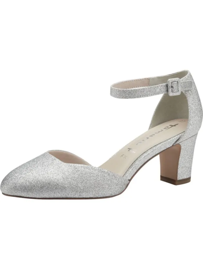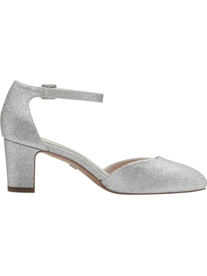 Gleite stilvoll durch festliche Anlässe mit diesen eleganten Pumps, die aus einem ansprechenden Materialmix gefertigt sind und durch eine glitzernde Oberfläche bestechen. Ihr klassisches Design in sanften Farbtönen wie Weiß und Roségold fügt sich harmonisch in jede Garderobe ein und verleiht dir eine feminine Note. Der stabile Blockabsatz von 6,0 cm sorgt für angenehmen Tragekomfort, während die modischen Riemchen mit Schnalle alle Blicke auf sich ziehen. Ideal für Hochzeiten und Abendveranstaltungen.