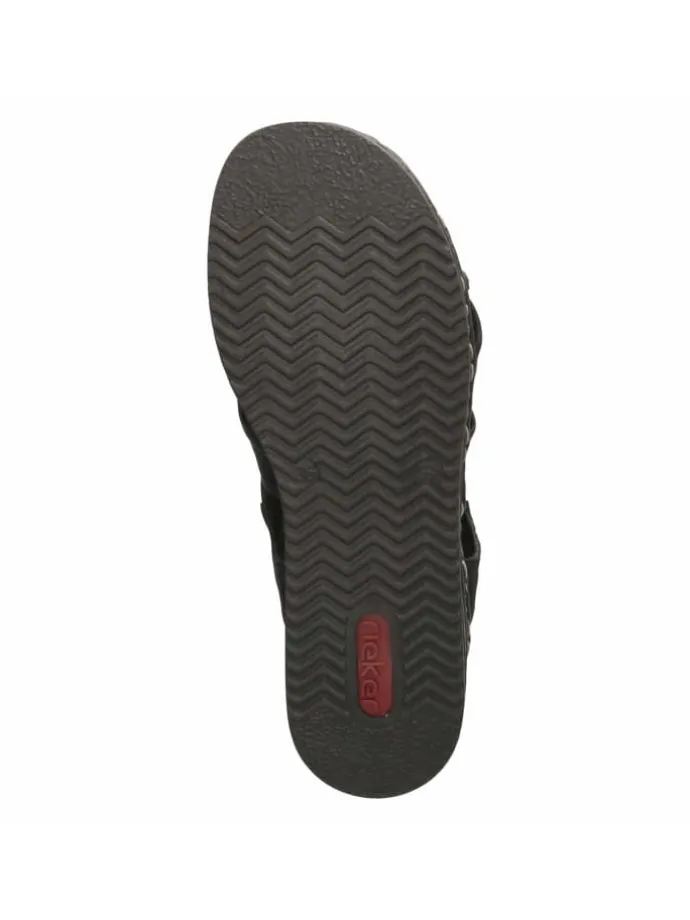 Diese Damen-Sandalen von Rieker verbinden praktische Features mit stilvoller Zurückhaltung. Das pflegeleichte Synthetik-Obermaterial zeigt sich widerstandsfähig im Alltag, die offene Spitze verleiht sommerliche Frische. Zwei kleine Elastikeinsätze erlauben ein rasches Hineinschlüpfen ohne Verschluss und sichern bequemen Halt. Innen sorgen gepolstertes Fußbett und Textildecksohle für angenehme Weichheit, die rutschhemmende Laufsohle gibt Sicherheit bei jedem Schritt. Ein goldfarbenes Markenlogo unterstreicht den sympathischen Look dezent. Die Passform fällt normal aus und bietet eine zuverlässige Basis für verschiedenste Outfits. Modetipp: Zu einer Leinen-Bermuda, gestreiftem Oversize-Hemd und Sonnenbrille entsteht ein maritim inspirierter Look mit moderner Note.