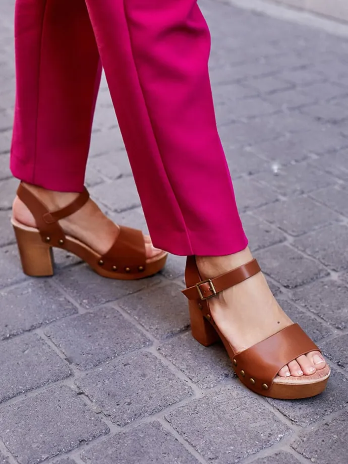 – Absatzform: Block-Absatz mit Plateau unter dem Vorderfuß