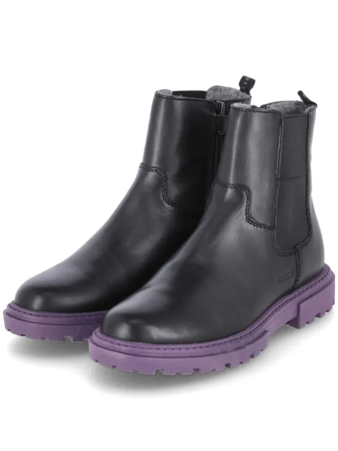 Als stilvoller Allrounder präsentiert sich dieser Chelsea Boot von Richter in schwarzem Glattleder und mit markanter lila Profilsohle. Die runde Schuhspitze, ein 3 cm Blockabsatz und die verstärkte Ferse bieten Stabilität, während der Reißverschluss in Kombination mit dem elastischen Einsatz und der Anziehlasche das An- und Ausziehen erleichtert. Ein leicht warmes Textilfutter sowie die weiche Textildecksohle sorgen für angenehmes Klima und Komfort an kühleren Tagen. Das robuste Echtleder überzeugt durch Langlebigkeit, die rutschhemmende Sohle unterstützt sicheren Halt im Alltag von Grundschulkindern. Größenhinweis: fällt normal aus und eignet sich damit für den täglichen Einsatz. Modetipp: In Kombination mit Leggings, Oversize-Sweatshirt und einer farblich abgestimmten Mütze entsteht ein sportiv-cooler Look mit dezentem Farbakzent.