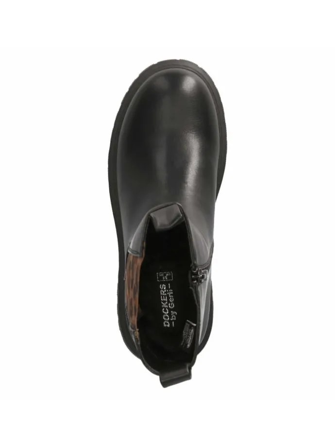 Robust, stilvoll und kindgerecht: Der Dockers Chelsea Boot kombiniert zeitloses Schwarz mit einem auffälligen Elastikeinsatz im Animal-Look. Das Obermaterial aus Textil & Synthetik ist strapazierfähig, der 4 cm Blockabsatz und die rutschfeste Laufsohle bieten zuverlässigen Halt bei wechselhaften Bedingungen. Der seitliche Reißverschluss, zwei Anziehlaschen und die verstärkte Ferse stehen für Komfort und einfache Handhabung im Alltag. Ein warmes Futter sowie die weiche textile Decksohle sorgen für angenehmes Fußklima, die runde Spitze schützt die Zehen und unterstützt natürliches Abrollen. Die Passform fällt normal aus und macht die Größenauswahl unkompliziert. Modetipp: Mit Jogger, Longsleeve und Bomberjacke entsteht ein sportiver Look, zu Faltenrock und Strickweste ein moderner Preppy-Style.