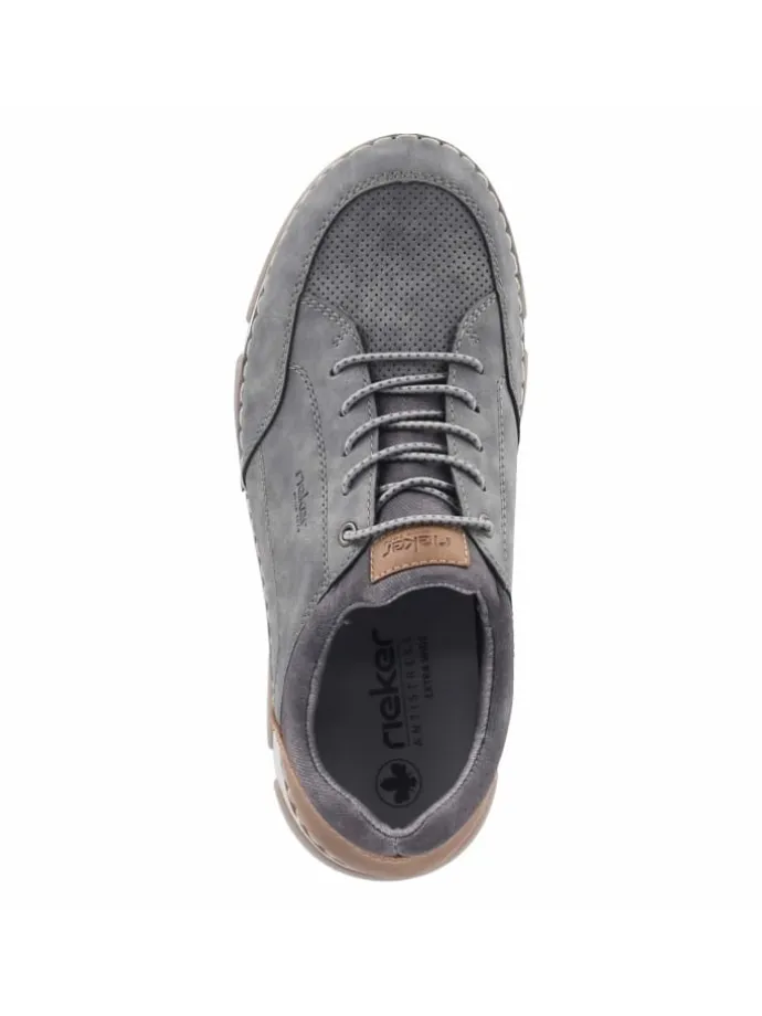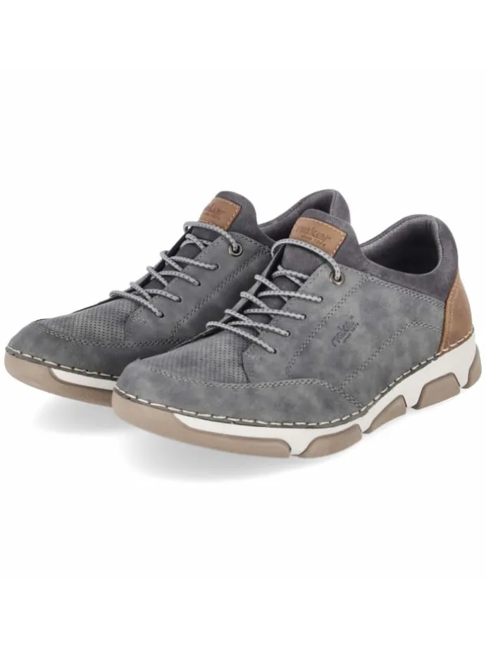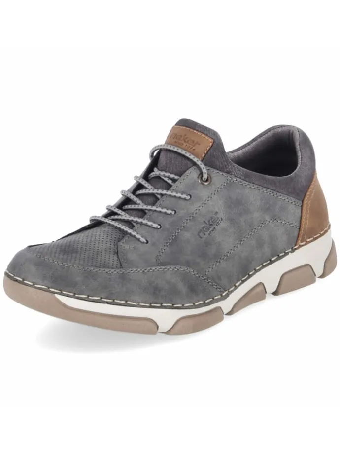 Mit klarer Formsprache und funktionaler Ausstattung überzeugt dieser Rieker Herren-Sneaker in Grau. Die melierte Optik des Obermaterials aus Textil und Synthetik trifft auf eine pflegeleichte Oberfläche, die den täglichen Einsatz erleichtert. Für komfortablen Halt sorgt die Slip-on-Konstruktion ohne Verschluss, unterstützt durch ein Elastikband und den neoprenähnlichen Sockeneinstieg. Verstärkte Bereiche an Ferse und Zehen erhöhen die Strapazierfähigkeit, die braune Hinterkappe setzt einen edlen Kontrast. Innen trifft eine textile Decksohle auf ein komfortables, herausnehmbares Wechselfußbett, ideal für individuelle Einlagen. Der Schuh fällt normal aus und rundet sportive Outfits stilvoll ab. Modetipp: Mit sandfarbener Cargo, grauem Crewneck und leichter Steppweste gelingt ein lässiger Layering-Look.