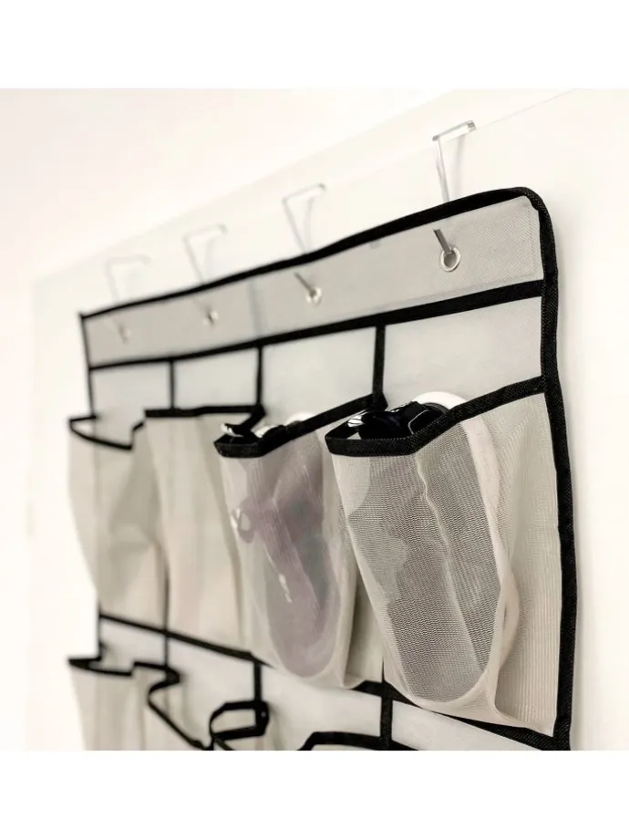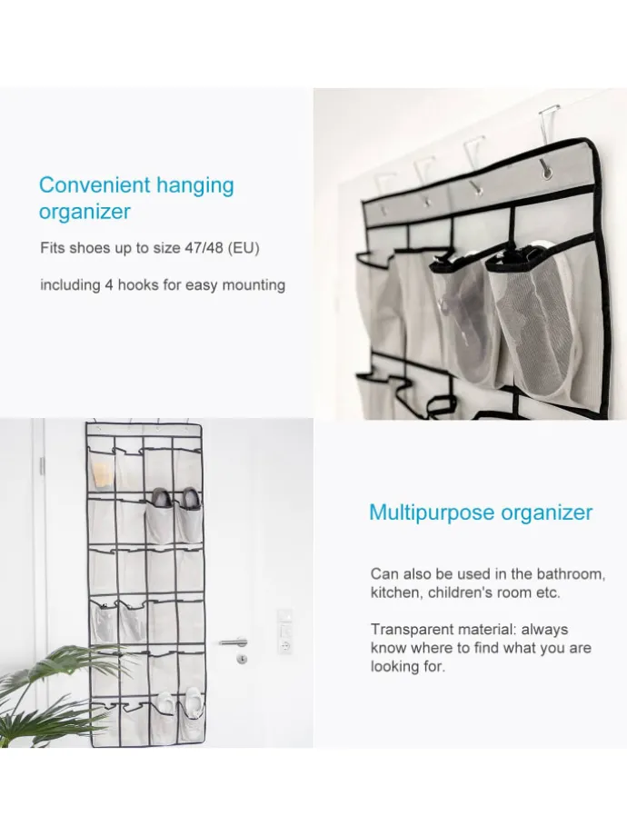 Holen Sie sich mit unserem Schuhorganizer zum Hängen maximale Ordnung in Ihr Zuhause! Mit 24 geräumigen Fächern eignet er sich hervorragend zur Schuhaufbewahrung in Ihrem Schlafzimmer oder Flur. Die multifunktionale Aufbewahrungstasche ist nicht nur für Schuhe geeignet – Sie können damit auch Schmuck, Accessoires oder kleine Küchenutensilien organisieren.
