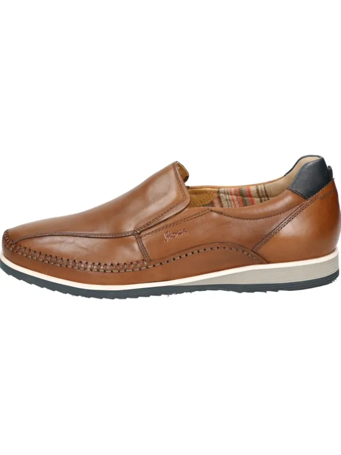 Leichter Herren-Mokassin-Slipper aus natürlichem Kalbleder in auffälliger Optik mit seitlichen Gummizügen am Einschlupf für beste Passform. Gefüttert mit leichtem Textil-Stoff und ausgestattet mit einem lederbezogenem Wechselfußbett zum Austauschen gegen eine eigene Einlage. Perfekt abgerundet wird dieser Herrenslipper durch die sehr leichte Gummisohle.