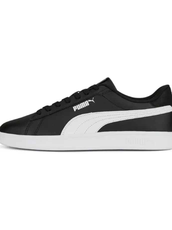 Schuhe aus strapazierfähigem Synthetik Mit den Sneakern Puma Smash 3.0 L der Marke PUMA findest du deine neuen Lieblingsschuhe. Mit der Schnürung kannst du den Schuh sowohl individuell an deinen Fuß anpassen, als auch mit kreativen Schnürmethoden für einen Hingucker sorgen. Mit dem Obermaterial aus Synthetik sind die Schuhe leicht und strapazierfähig. Für den besten Sitz solltest du schon beim Kauf darauf achten, dass du etwa eine Daumenbreite Platz nach vorne hast. Da die Füße durch die Belastung über den Tag breiter werden, kannst du Schuhe am besten nachmittags oder abends anprobieren. So einfach kombinierst du Sneaker Getragen mit einem Oversize-Shirt, einer Jeans und Bomberjacke kommt der sportliche Stil mit den Sneakern besonders gut zur Geltung. Ausgefallener wird es mit einer Jeans im coolen Used-Look. Wenn dir das noch nicht trendig genug ist, kannst du ein zusätzliches Highlight mit wadenhohen Socken setzen, die unter der etwas hochgekrempelten Hose hervorblitzen. So kombinierst du bequemen Tragekomfort und stylisches Aussehen — mit diesen Unisex-Sneakern Puma Smash 3.0 L von PUMA.