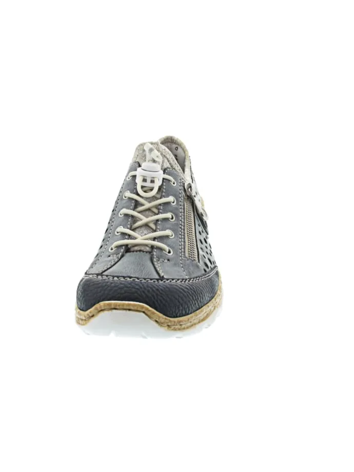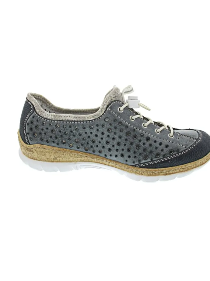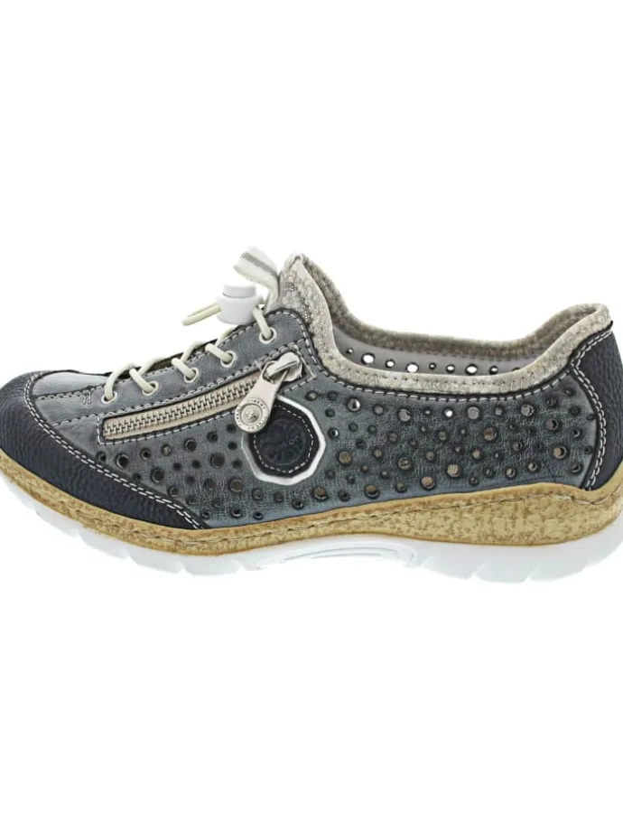– Rieker antistress Schnürschuh – Laufsohle in Korkoptik – Schock- und Feuchtigkeitsabsorption – rutschhemmend – mehr Platz dank verbreiterter Brandsohle – sportiver Look – trendiger Sneaker mit Schnellschnürverschluss – Zungenlasche – Außenseite mit Zierreißverschluss – gut gepolsterte Decksohle aus Memory-Schaum – sporticher Halbschuh zum Reinschlüpfen geeignet – sommerliche Lochausstanzungen
