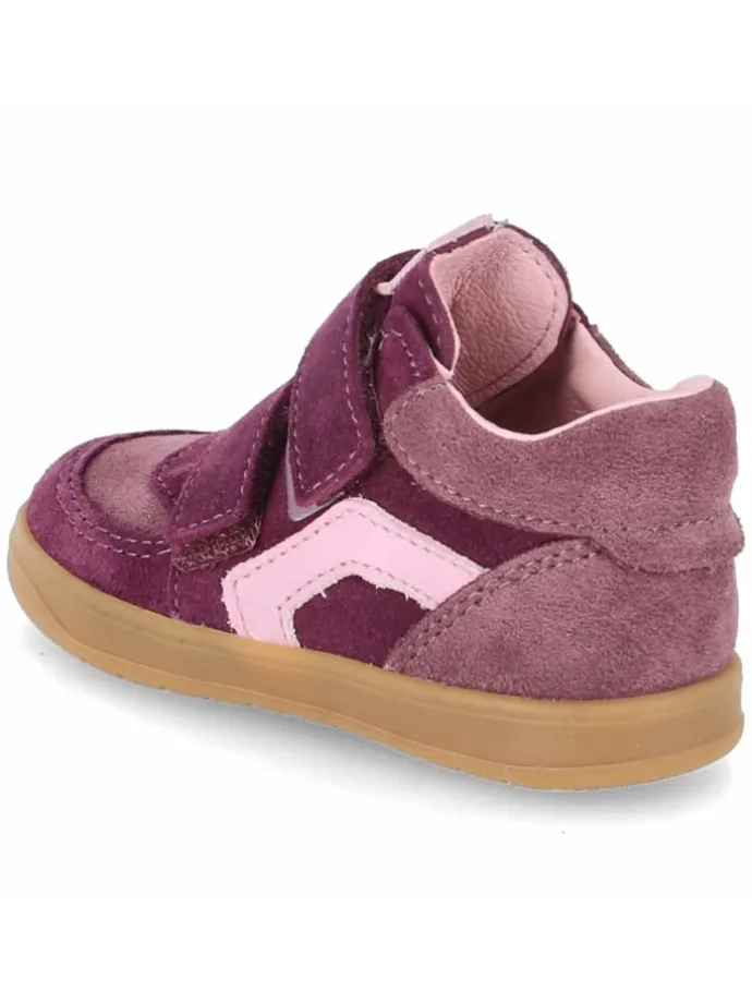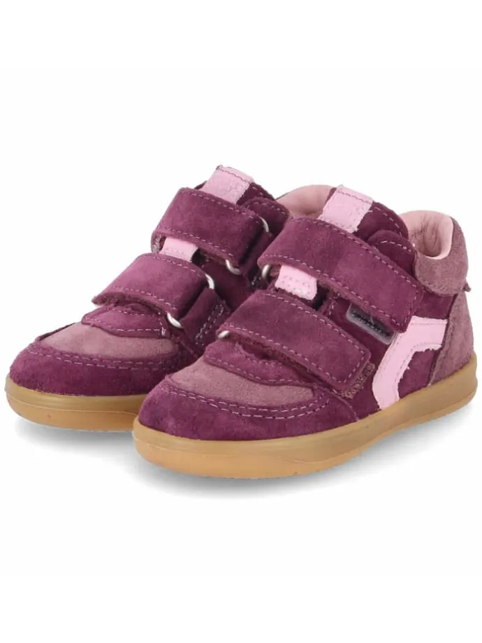 NIRU von Pepino verbindet Schutz und Beweglichkeit in einem kinderfreundlichen Design. Das lila Rauleder ist langlebig und verleiht dem Halbschuh eine frische, sportliche Optik. Dank Sympatex bleibt das Modell wasserfest und atmungsaktiv, wodurch ein ausgeglichenes Fußklima entsteht. Zwei Klettriemen erleichtern das Anziehen und stabilisieren den Mittelfuß, die runde Spitze sowie verstärkte Fersen- und Zehenbereiche erhöhen die Sicherheit. Die flexible, griffige, rutschfeste Laufsohle bietet Trittsicherheit auf Spielplatz und Bürgersteig. Innen sorgen Lederdecksohle und herausnehmbares Fußbett für Komfort und einfache Pflege, ein gepolsterter Einstieg schont den Knöchel. Die Passform fällt normal aus. Modetipp: Zu Jogger-Pants, Longsleeve und einer leichten Steppweste kommt die dynamische Farbe besonders gut zur Geltung und rundet den Alltagsstil funktional ab.