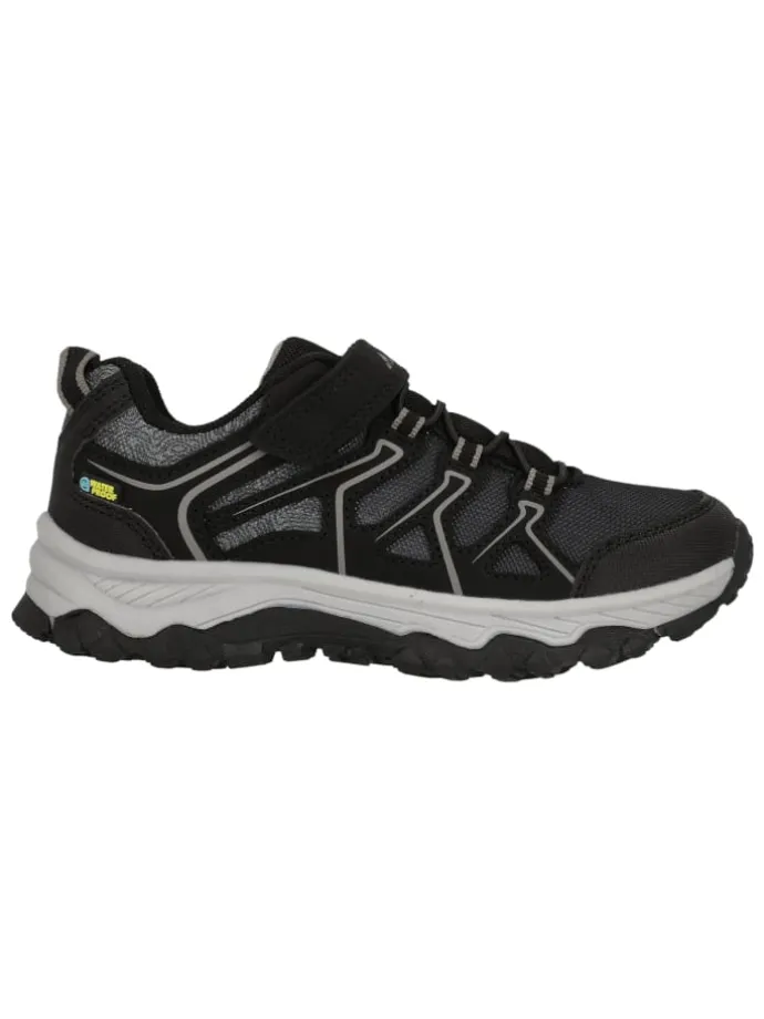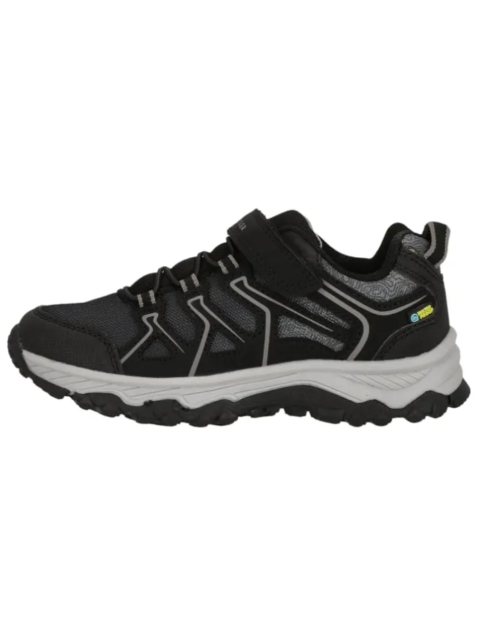 Der Schuh „Wony“ ist robust, strapazierfähig, und darüber hinaus auch noch wasserdicht – ideal für spannende Tage in der Natur! Der Schuh ist mit einem leichtgewichtigen Obermaterial sowie einer robusten und stoßdämpfenden Sohle angefertigt. Damit aktive Kids auch bei viel Bewegung komfortabel unterwegs sind, ist der Schuh atmungsaktiv und im Fersenbereich zusätzlich gepolstert. Verstärkte Elemente an der Fußspitze bieten noch mehr Schutz. Das Allwetterprofil sorgt für ein sicheres Auftreten und der smarte Klettverschluss erlaubt ein einfaches An- und Ausziehen. Kinderfreundlich und stylisch, ist dieser Schuh ein Must-Have für Outdooraktivitäten mit Kindern, oder aber auch im Alltag!